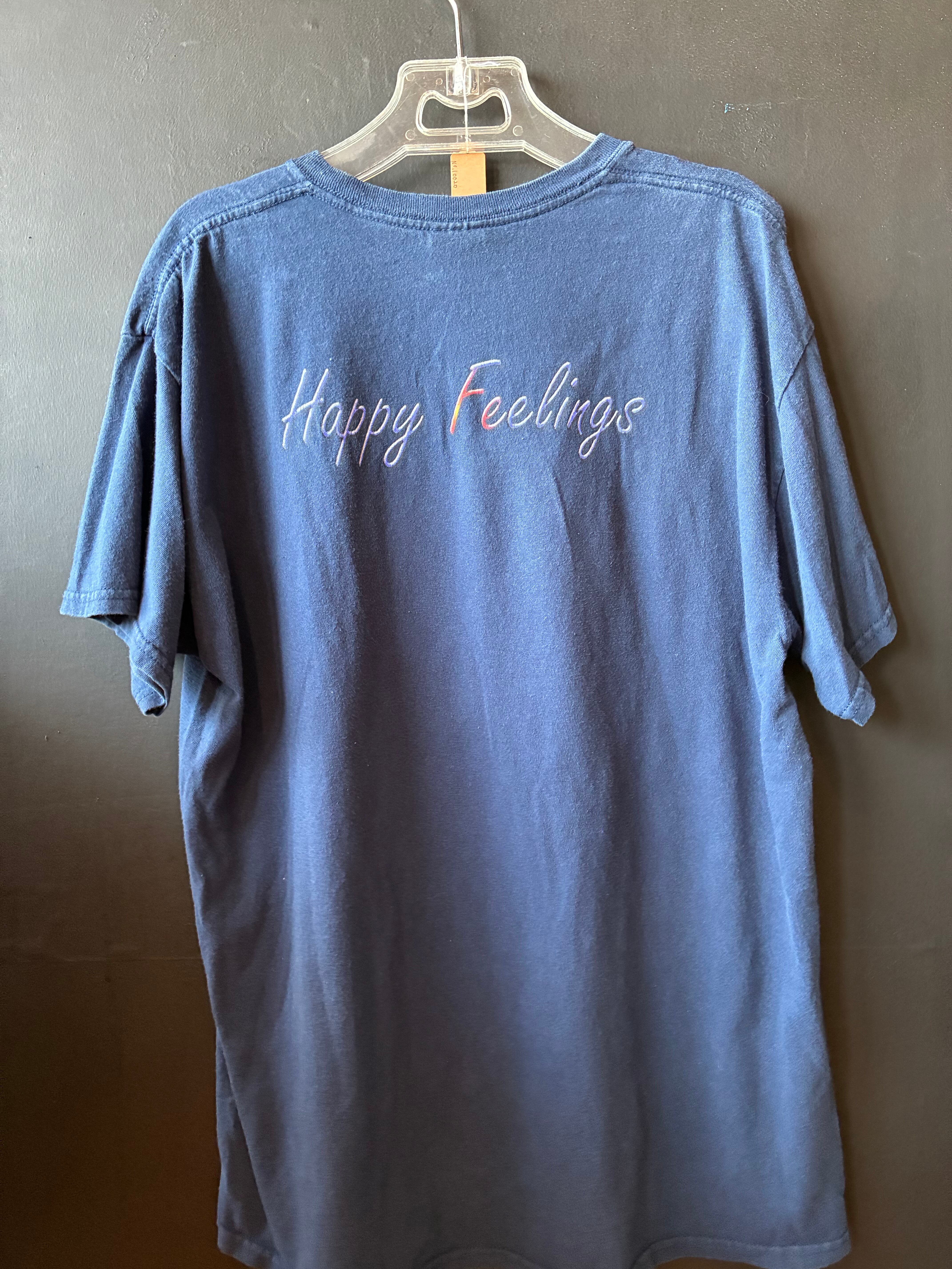 背面には代表曲「Happy Feelings」の文字がシンプルにプリントされており、前後で印象の違うデザインもポイント。GILDANボディ特有のしっかりとした生地感で、着回しやすいゆったりシルエットです。
