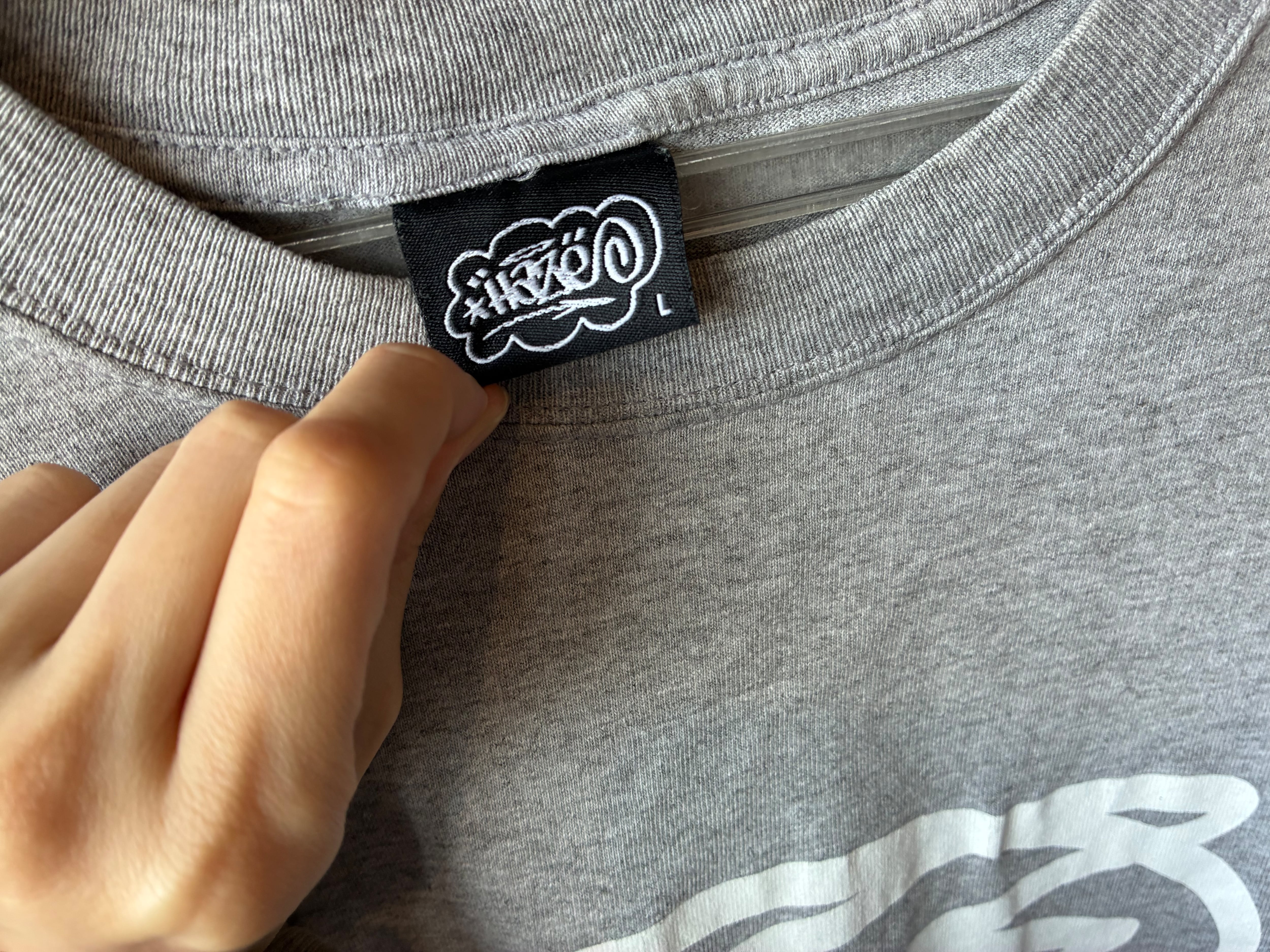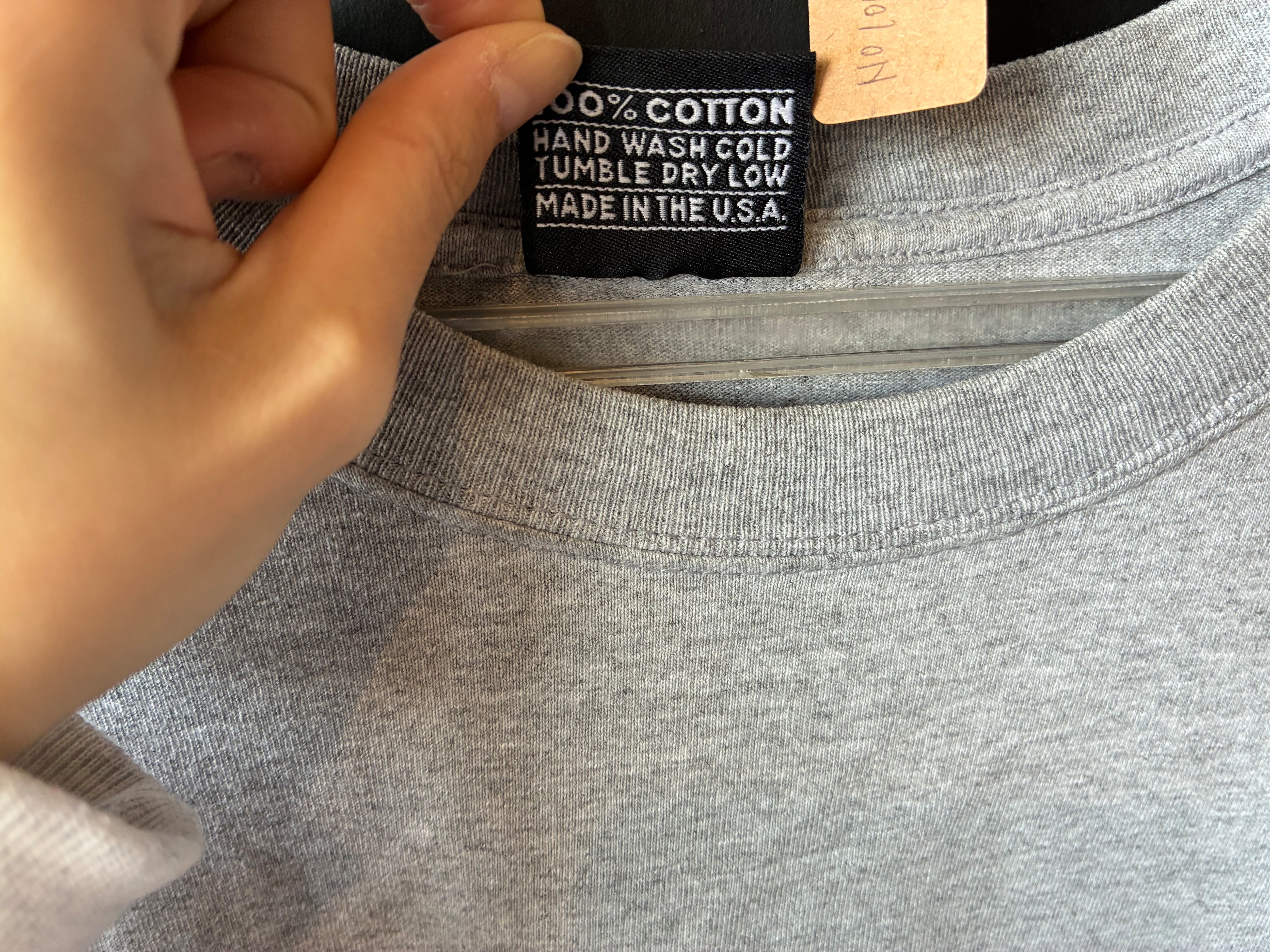 バックネック部分には「2002」と書かれたワンポイントロゴ入り。MADE IN U.S.A.、100%コットンで、しっかりとした生地感です。