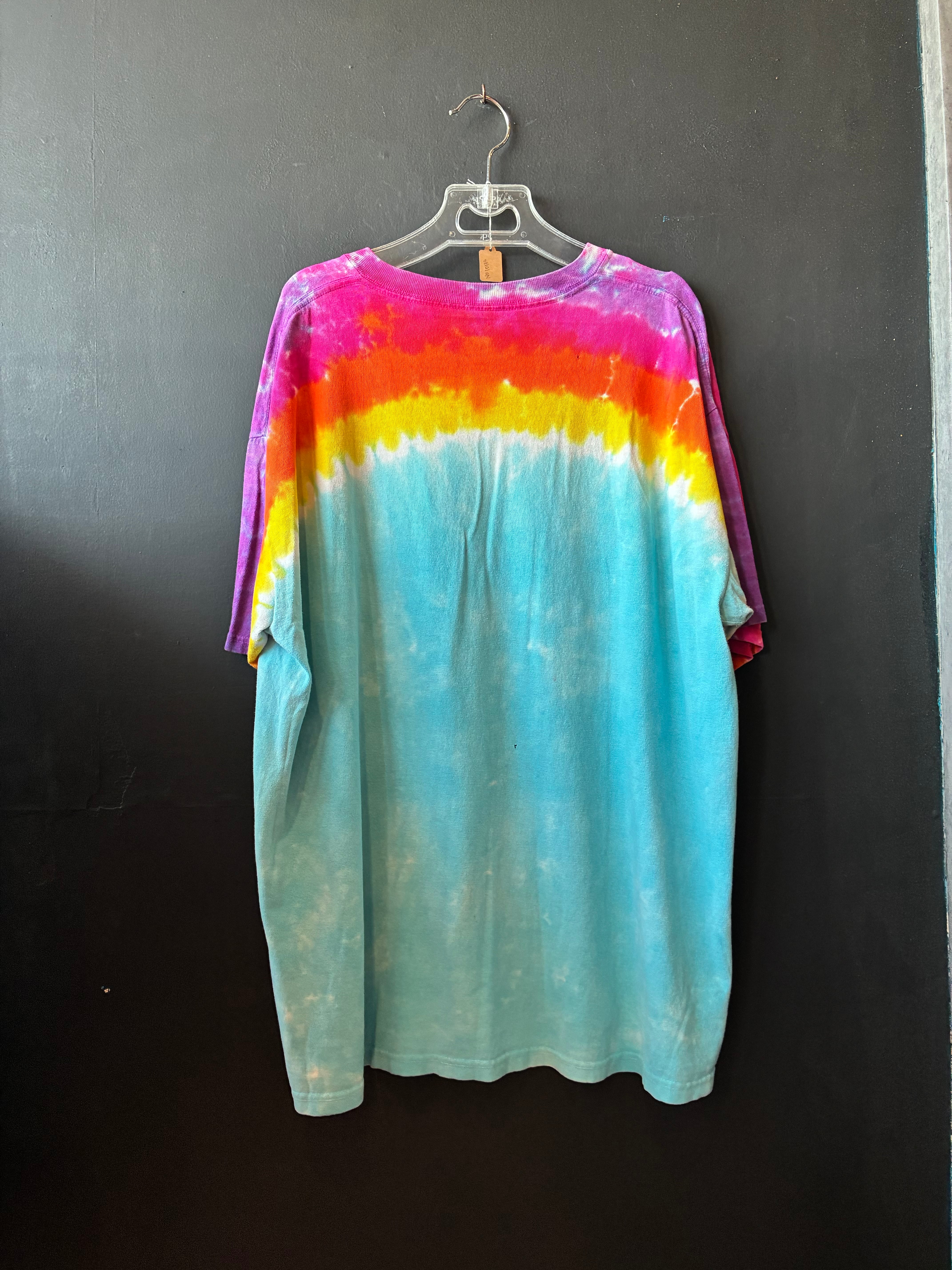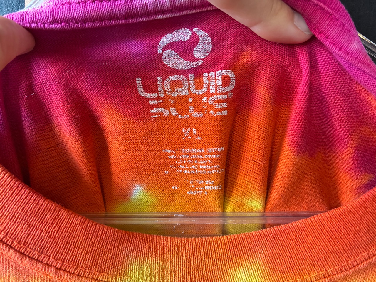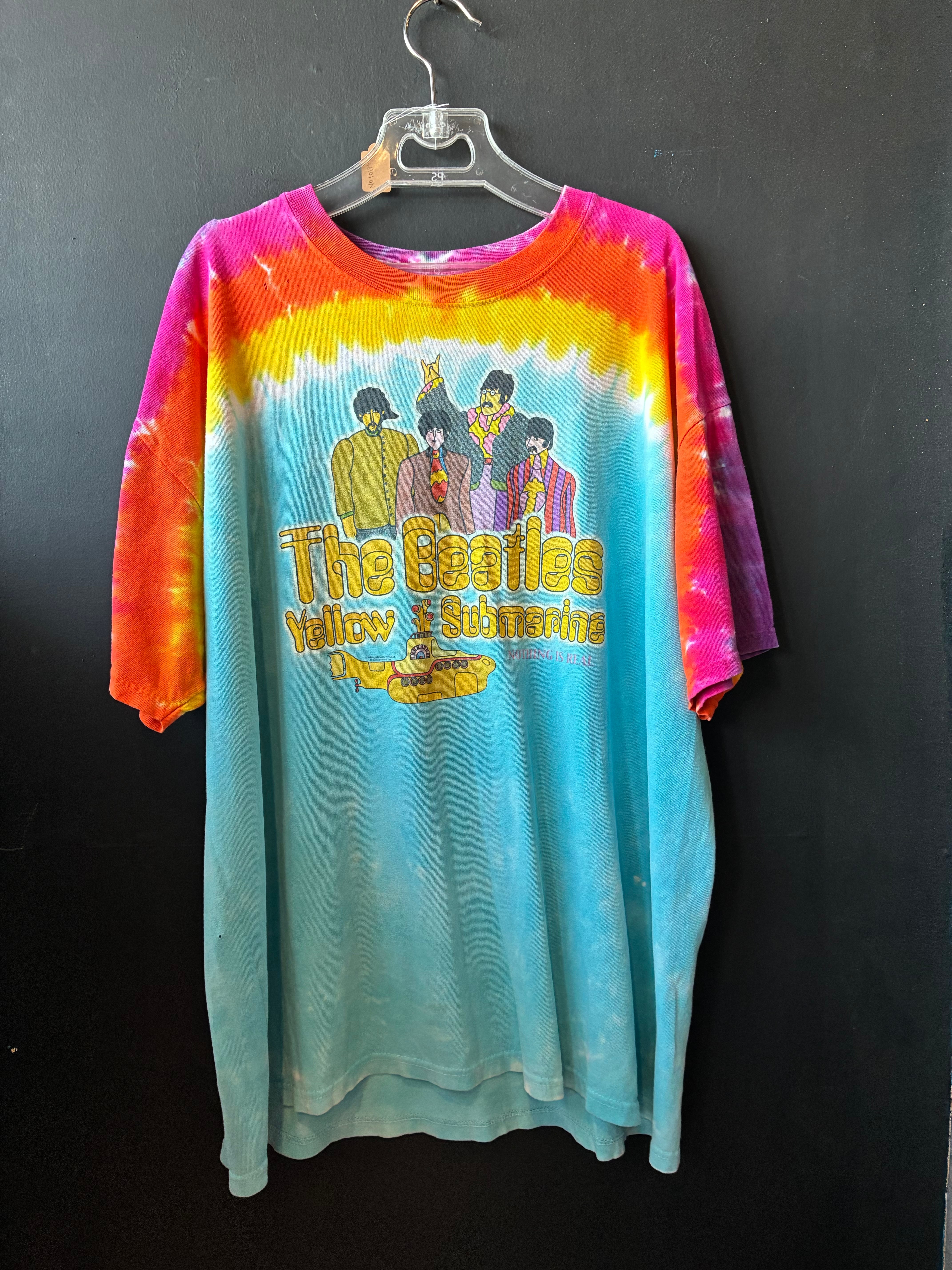 ビートルズの名作アニメーション映画『Yellow Submarine』をモチーフにしたタイダイTシャツ。カラフルなグラデーションとアートワークが目を引く一枚です。ボディはアメリカのTシャツブランド「Liquid Blue」製で、品質の良さとユニークなプリントで知られています。