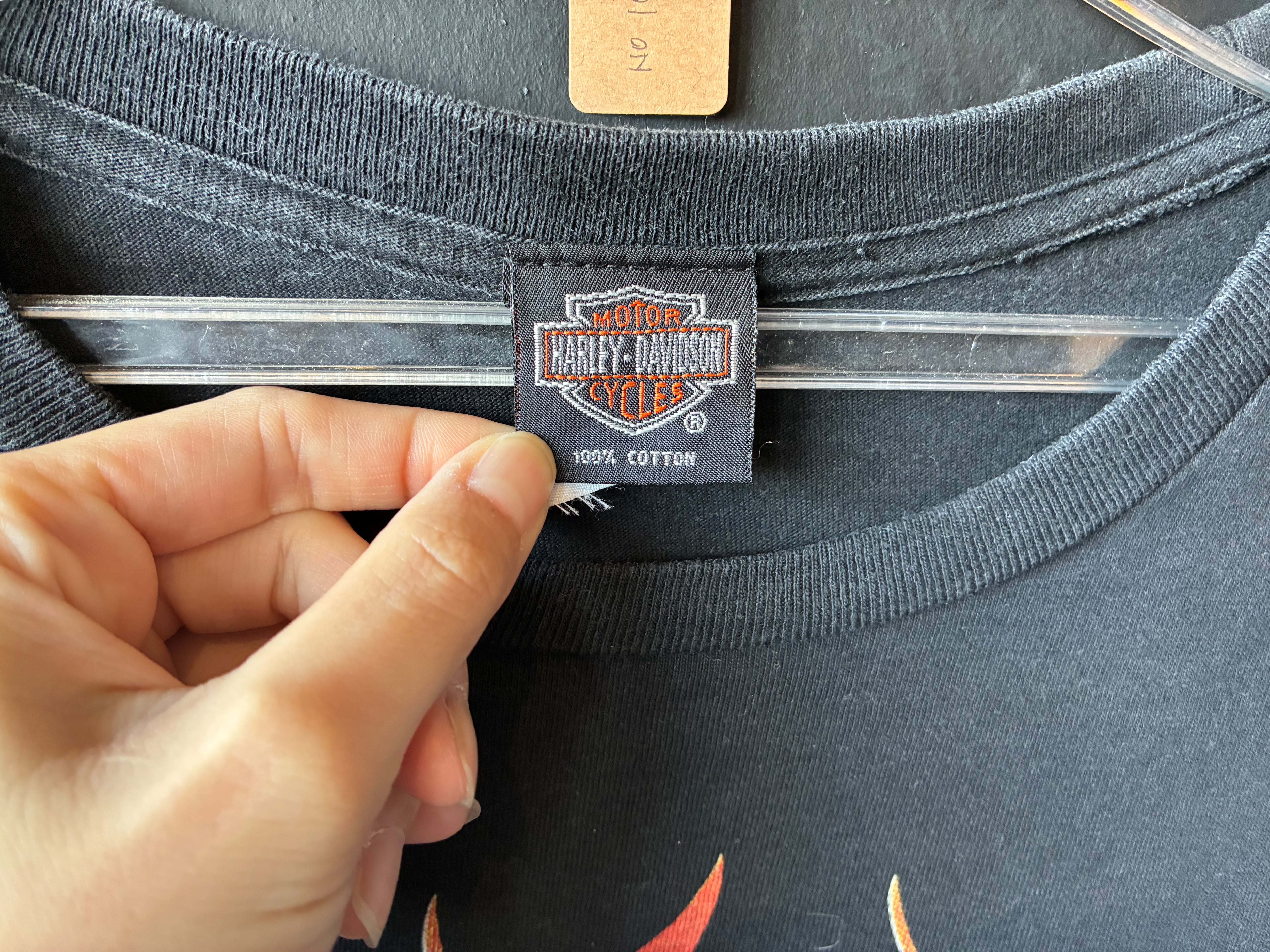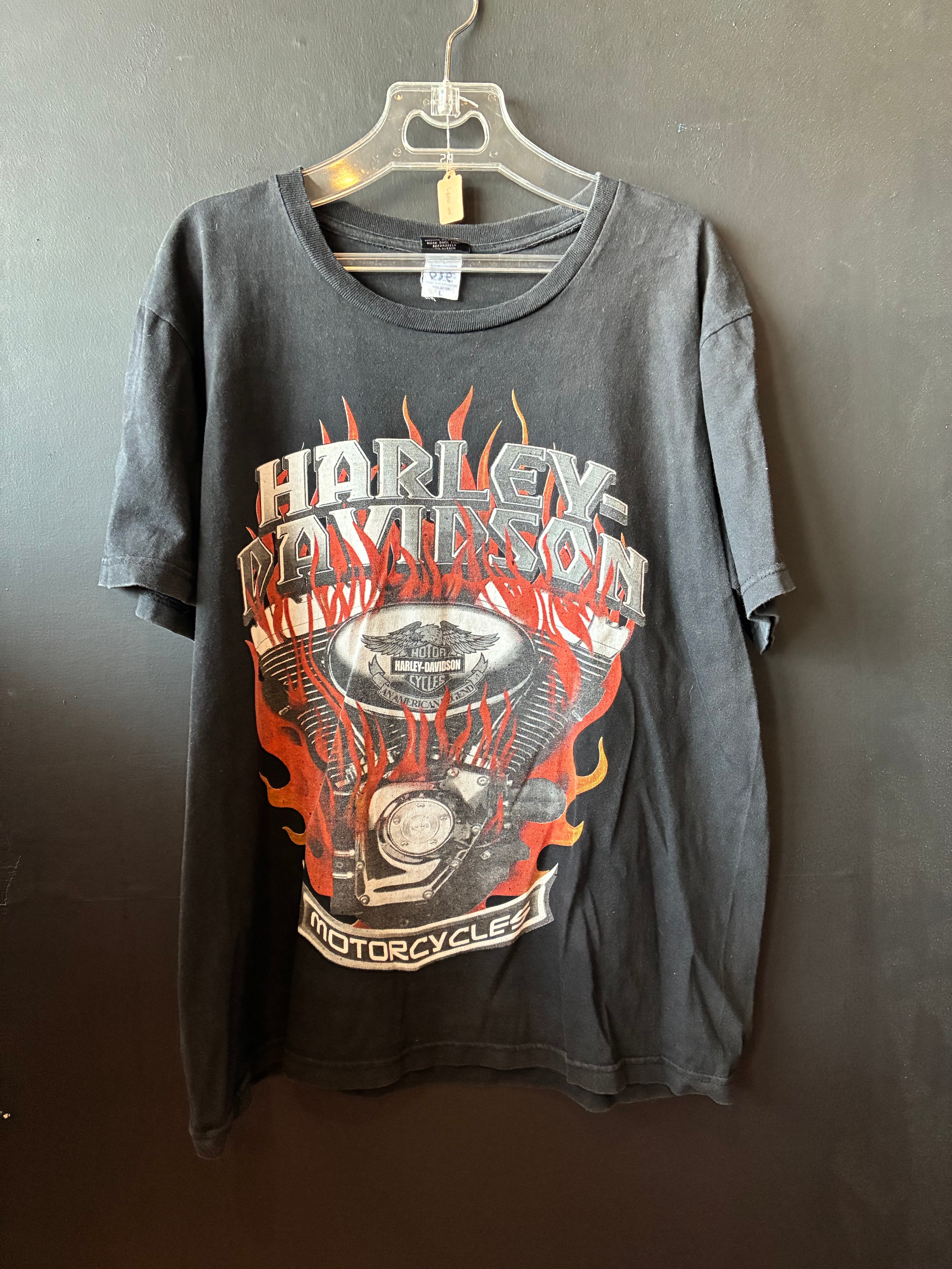 【HARLEY-DAVIDSON ファイヤーパターン エンジンプリントTシャツ】