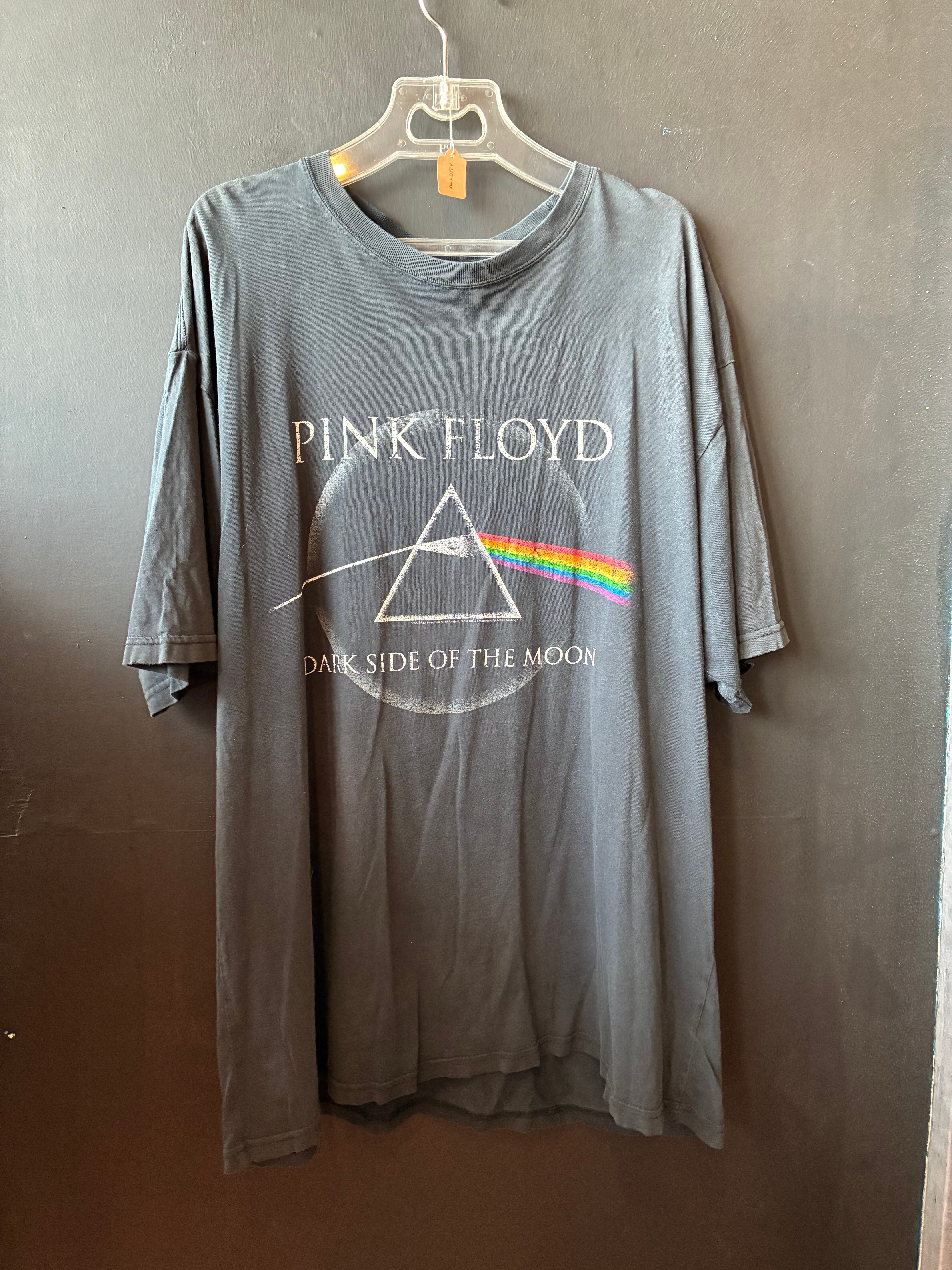 プログレッシブ・ロックを代表する名盤『DARK SIDE OF THE MOON』のジャケットアートを大胆にプリントした、ピンク・フロイドのバンドTシャツ。プリズムを通る光のグラフィックが象徴的な一枚で、ファンにはたまらない名作デザインです。