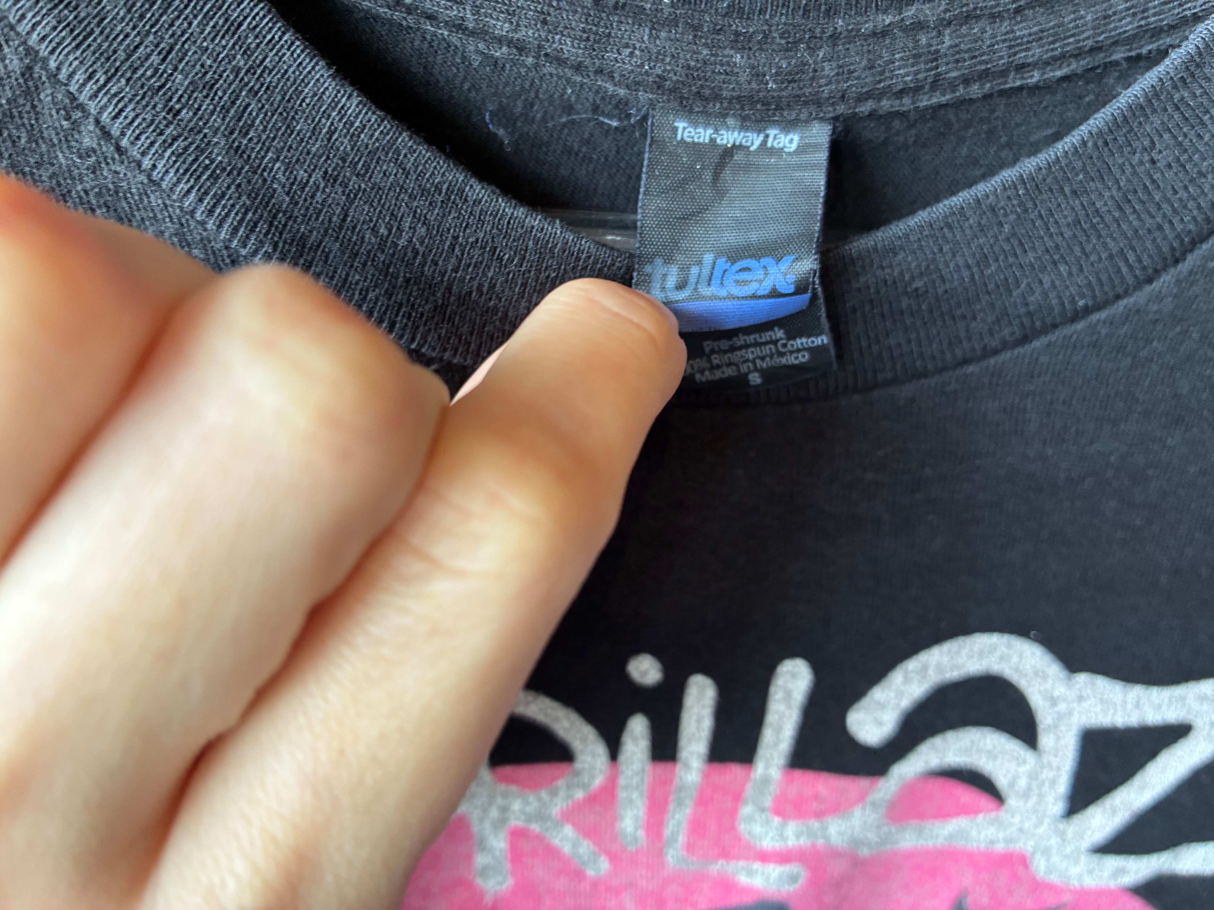 人気バーチャルバンド「Gorillaz」のメンバーがフロントに大きくプリントされた1枚。ブラックボディに映えるピンクのサークルとキャラクターのビジュアルが存在感抜群です。