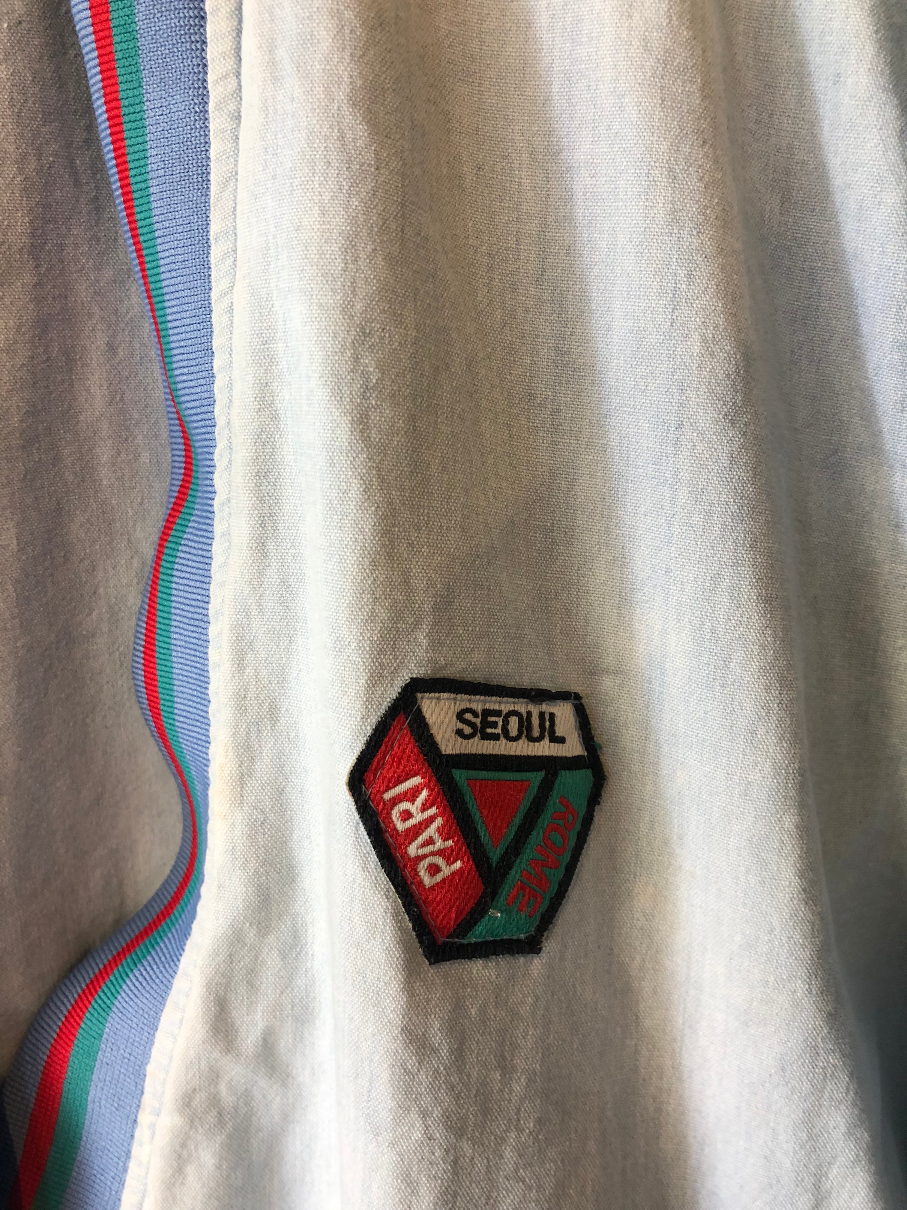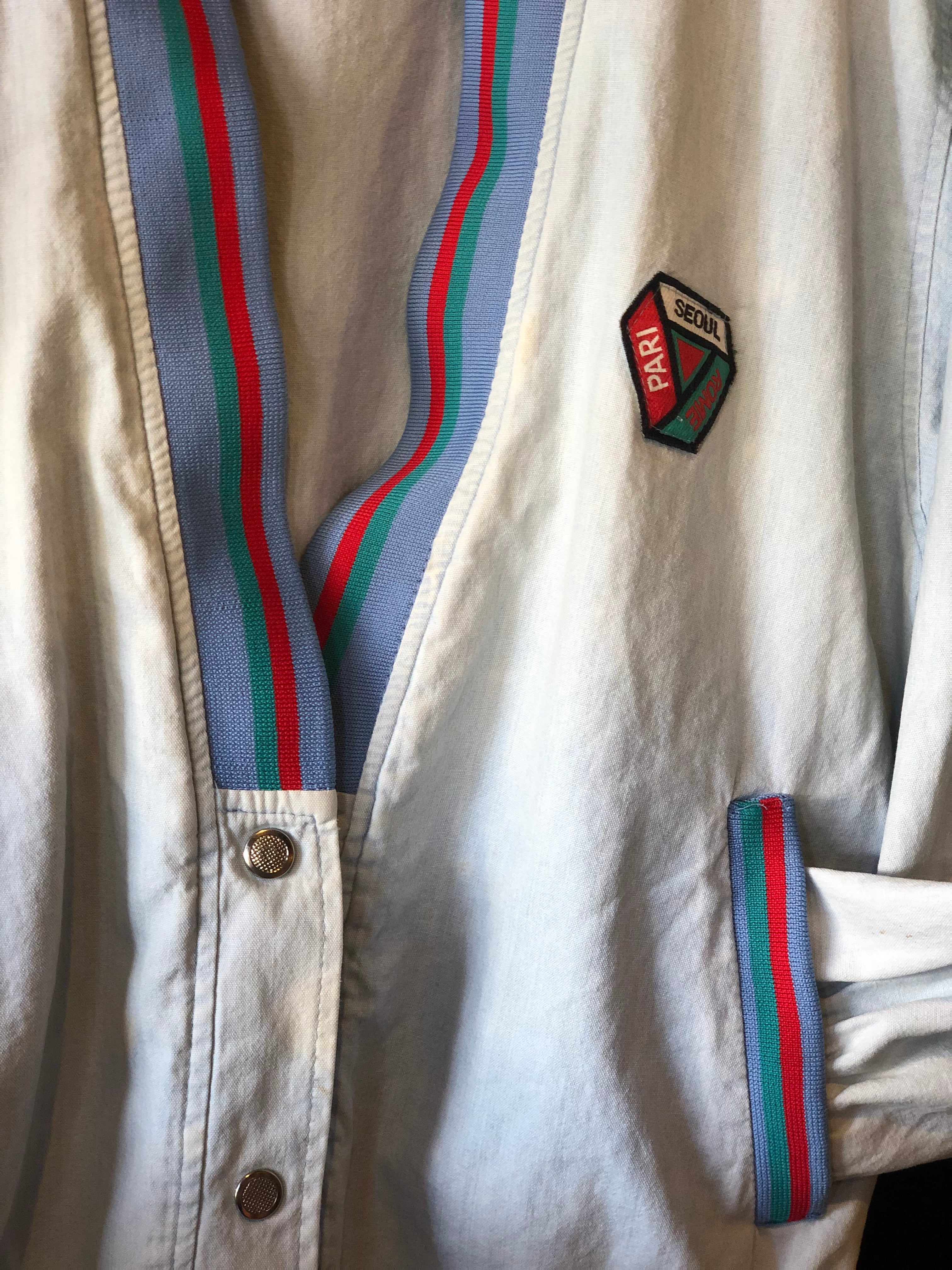 1988年ソウルオリンピック公式ジャケット。 冷戦終盤、歴史が動いた大会のリアルヴィンテージ。 80年代特有のパステル配色と太リブ。 ファッションで歴史を着る一着。